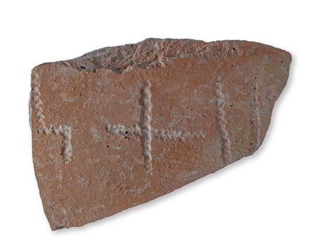 SOLDIERS FOR HIRE. After its 11th- or tenth-century destruction, Khirbet al-Ra‘i remained abandoned until the seventh century BCE, when it was absorbed into the kingdom of Judah. By that time, however, the settlement was confined to the site’s summit, where a large building, perhaps a fort, was constructed. In this building, excavators discovered a sherd inscribed with the letters kty, likely a reference to the kittim, Greek mercenaries known from other contemporary Judahite sources such as the Arad Letters. This would suggest that the site was a Judahite outpost housing a garrison of foreign mercenaries.