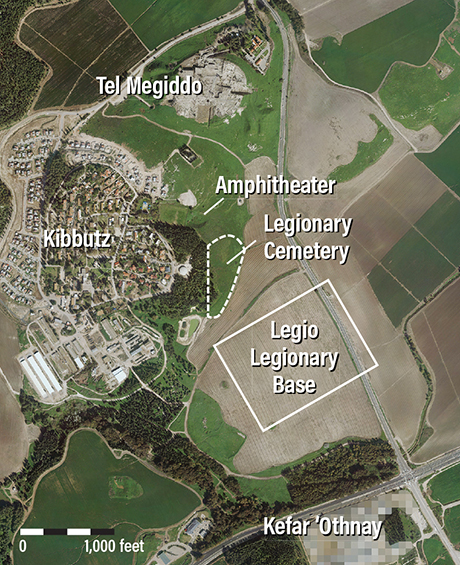 Greater Megiddo with modern and ancient structures highlighted
